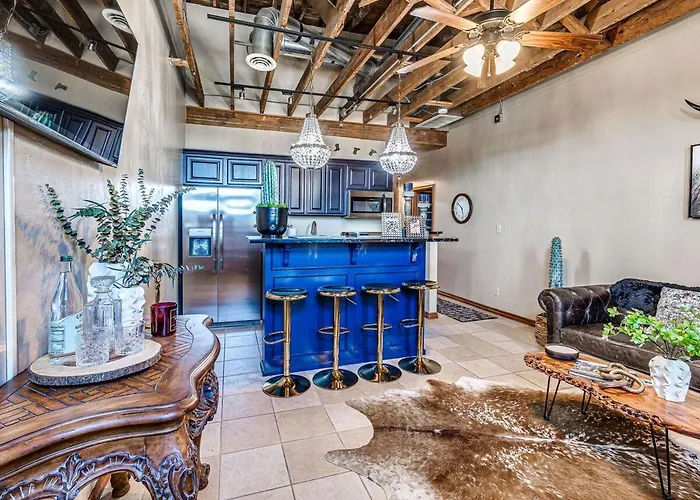 1BR Balcony Views And Cowboy Vibes Apartment offers a balcony and a fully equipped kitchen, as well as comforts like climate control.